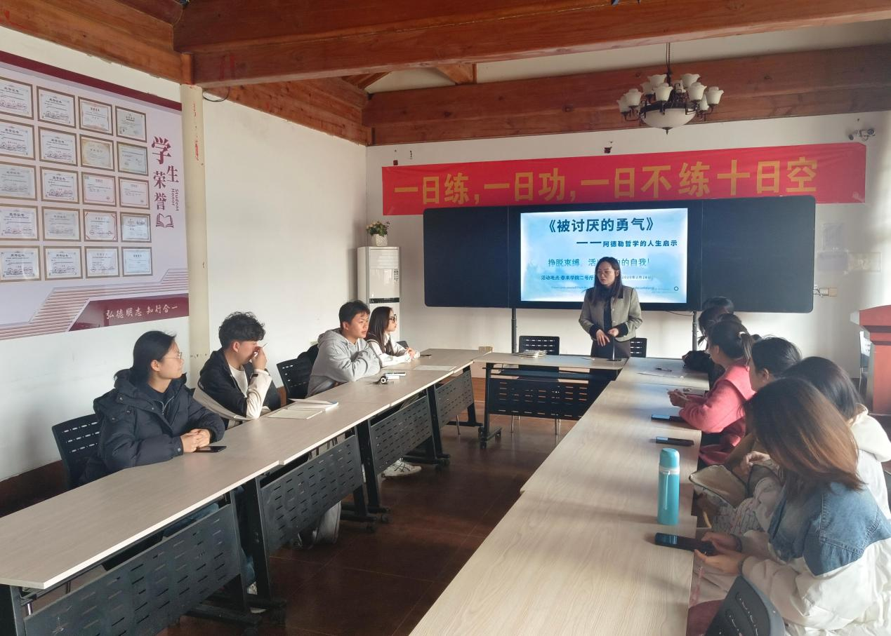 为帮助同学们理解《被讨厌的勇气》核心观点,探索如何将书中理论应用于现实生活、解决生活中常见的困惑,2月28日,春来学院(弘德书院)于一号厅举办《被讨厌的勇气》读书分享会。春来学院(弘德书院)育人导师李璐出席会议,春来学院(弘德书院)2023级学生代表参加会议,会议由梁佳瑶主持。