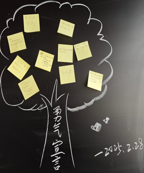 同学们纷纷分享自己的阅读心得,并通过情景模拟的形式,运用从书中得到的启示来化解情景难题。同学们分别提出自己最近的困惑,师生共同交流探讨,为每个人答疑解惑,并将自己的目标写在“勇气树”上。