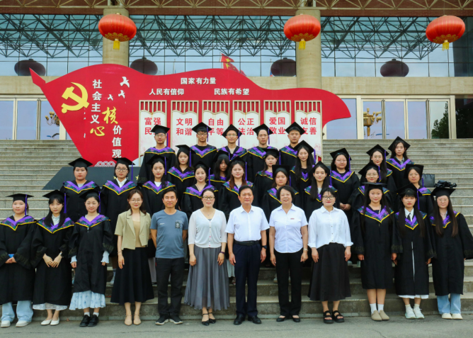 2025届毕业生于新主楼前与教师代表、领导合影留念