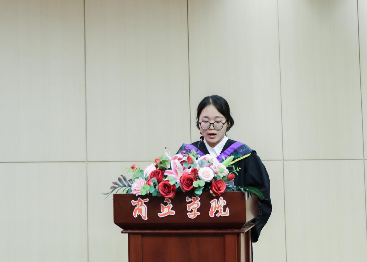 程印学代表学校,向春来学院(弘德书院)顺利完成学业的2025届全体毕业生表示热烈祝贺,立足长远发展,他提出三点建议:一是要始终保持学校所倡导的“三吃六心”精神;二是在工作中,要脚踏实地,勤奋努力,不断提升自己的专业能力和综合素质;三是在生活中,要保持积极乐观的心态,勇于面对困难和挑战,始终坚守自己的理想和信念。