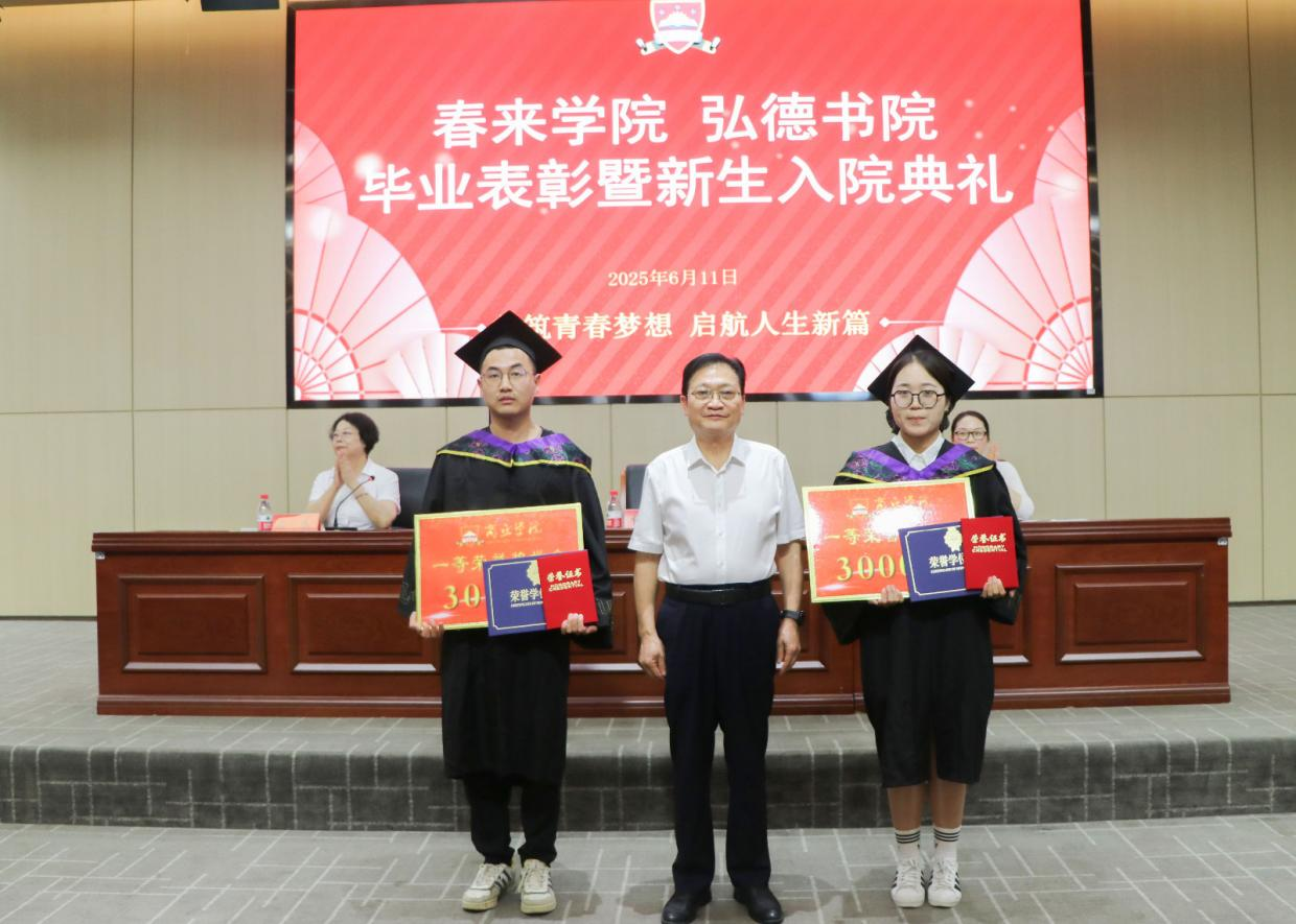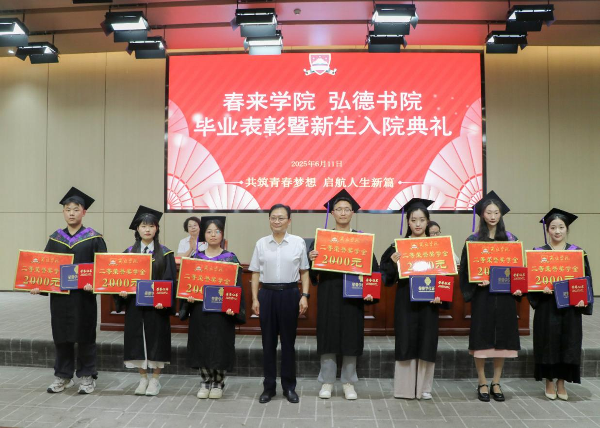 潘一展宣读《关于公布2025年入选春来学院(弘德书院)学生名单的通知》和《关于表彰2021级春来学院荣誉奖学金获得者的决定》。