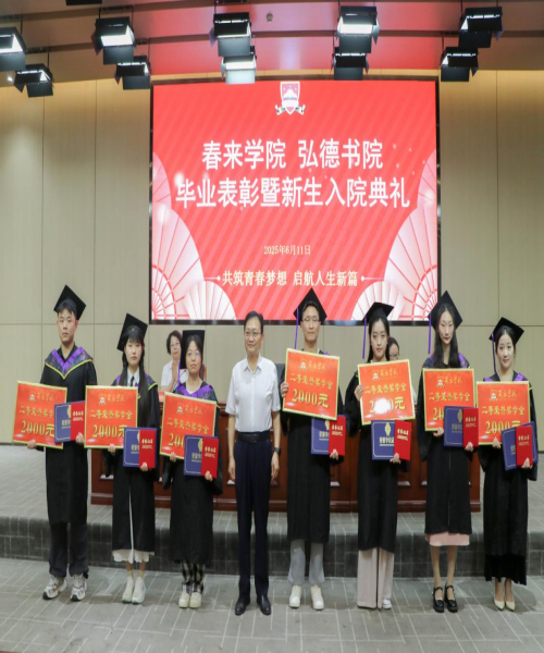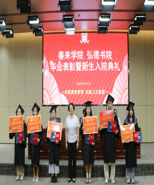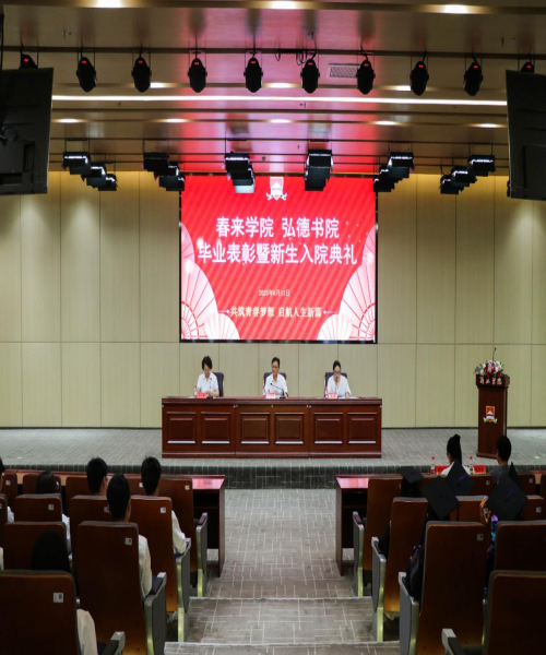 为表彰2025届优秀毕业生,欢迎2024级学生入院,营造积极向上的校园氛围,6月11日,商丘学院春来学院(弘德书院)于图书馆五楼多功能报告厅举行2025届优秀毕业生表彰暨2024级学生入院典礼。校长、党委副书记程印学,副校长潘一展出席典礼,春来学院(弘德书院)育人导师李璐,春来学院(弘德书院)成长导师代表、2025届毕业生及2024级春来学院(弘德书院)学生参加典礼。典礼由春来学院(弘德书院)副院长吴慧主持。