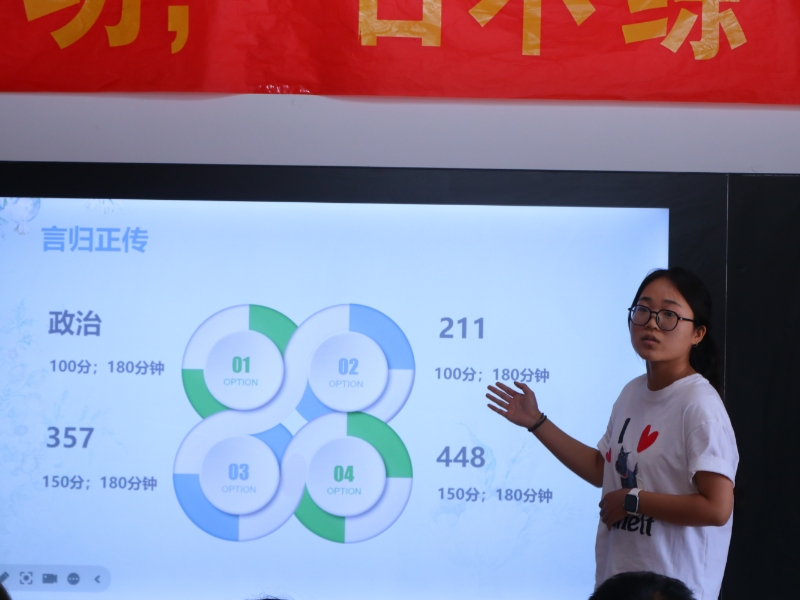吴慧提到,选择院校时要选择自己心仪的城市,并选择自己喜欢的专业。对于考研复试,她要求同学们从平时做起,站在讲台上要大大方方,不要怯场。对于备战考研,她对同学们提出四点希望:一是有目的,要朝着目标去努力;二是有计划,要做好时间规划,规划要细分到每一天的任务;三是有坚持,无论多么艰难都要坚持,不能半途而废;四是有收获,但前提是要有目的、做好规划,并坚持下去。