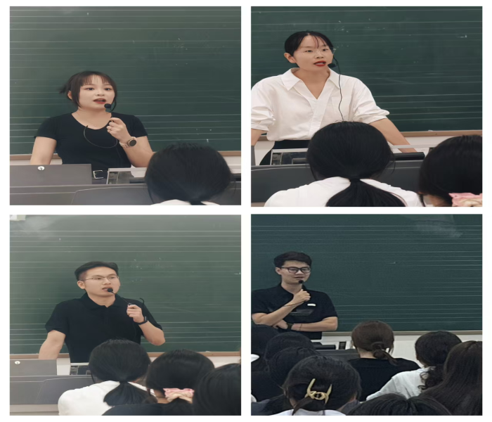 徐伟、王俊霞、许怡曈、谢明钊四位专业教师分别结合自身教学与研究领域,与新生展开互动交流。徐伟老师分享了新媒体行业的最新发展动态,提及高学历人才在行业深耕中的优势;王俊霞老师针对新生关注的专业课程学习方法进行细致解答,同时建议注重英语与专业理论知识的积累;许怡曈、谢明钊两位老师也围绕实践项目参与、学科竞赛对考研复试的助力等话题提供建议,现场氛围热烈融洽。