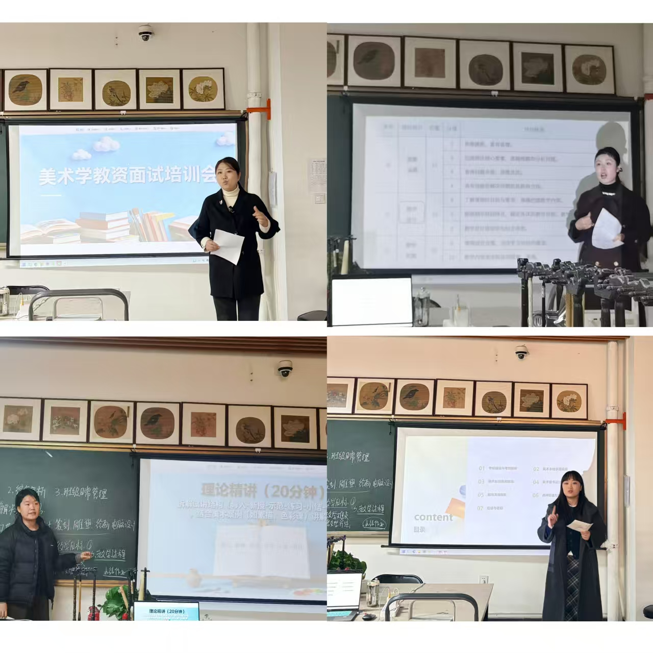为帮助美术学专业学子精准把握教资面试核心要点,提升试讲、答辩及技能展示能力,11月12日上午,美术学教研室举办美术教师资格面试培训会。本次培训会由冉琳老师主持,邀请张典、李晨雨、朱慧敏等经验丰富的青年教师担任评委,全体备考教资的同学参与其中。