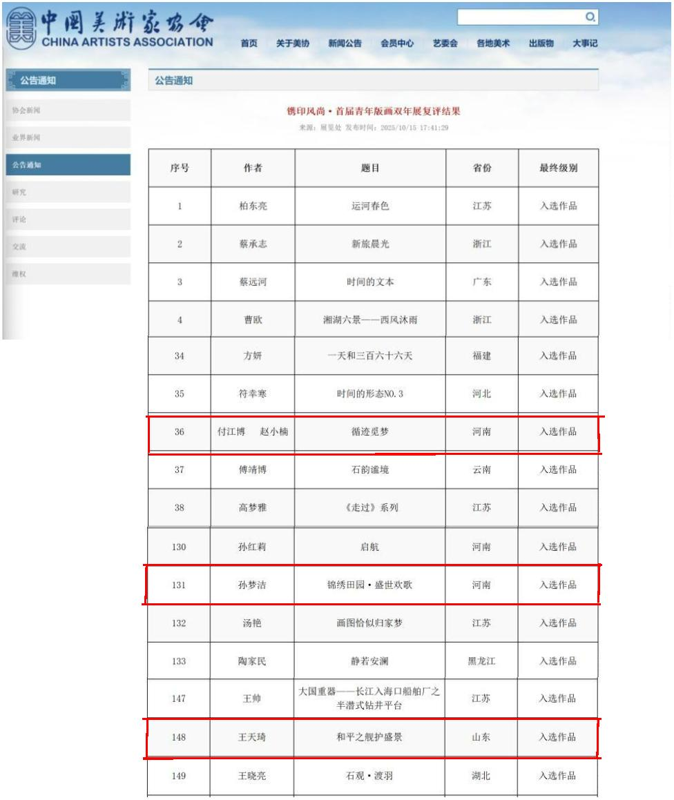 近日,由中国美术家协会主办的镌印风尚·首届青年版画双年展复评结果公布,商丘学院版画工作室付江博、赵小楠、王天琦、孙梦洁4位的作品被评为入选作品。