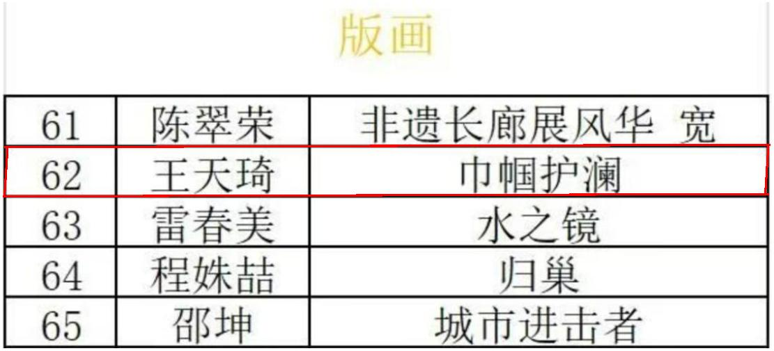 王天琦的入选作品《巾帼护澜》以版画为创作形式,既展现了扎实的艺术功底,又融入了对女性力量的深刻诠释,彰显了当代青年学子的艺术追求与时代担当。此次入选不仅是对王天琦个人创作水平的高度认可,也体现了我院在艺术教育领域的丰硕成果,为青年艺术学子搭建了良好的实践与展示平台。