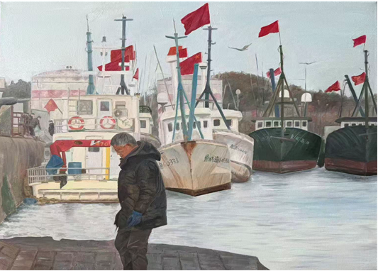 李婕妤 油画《红旗映处是渔家》