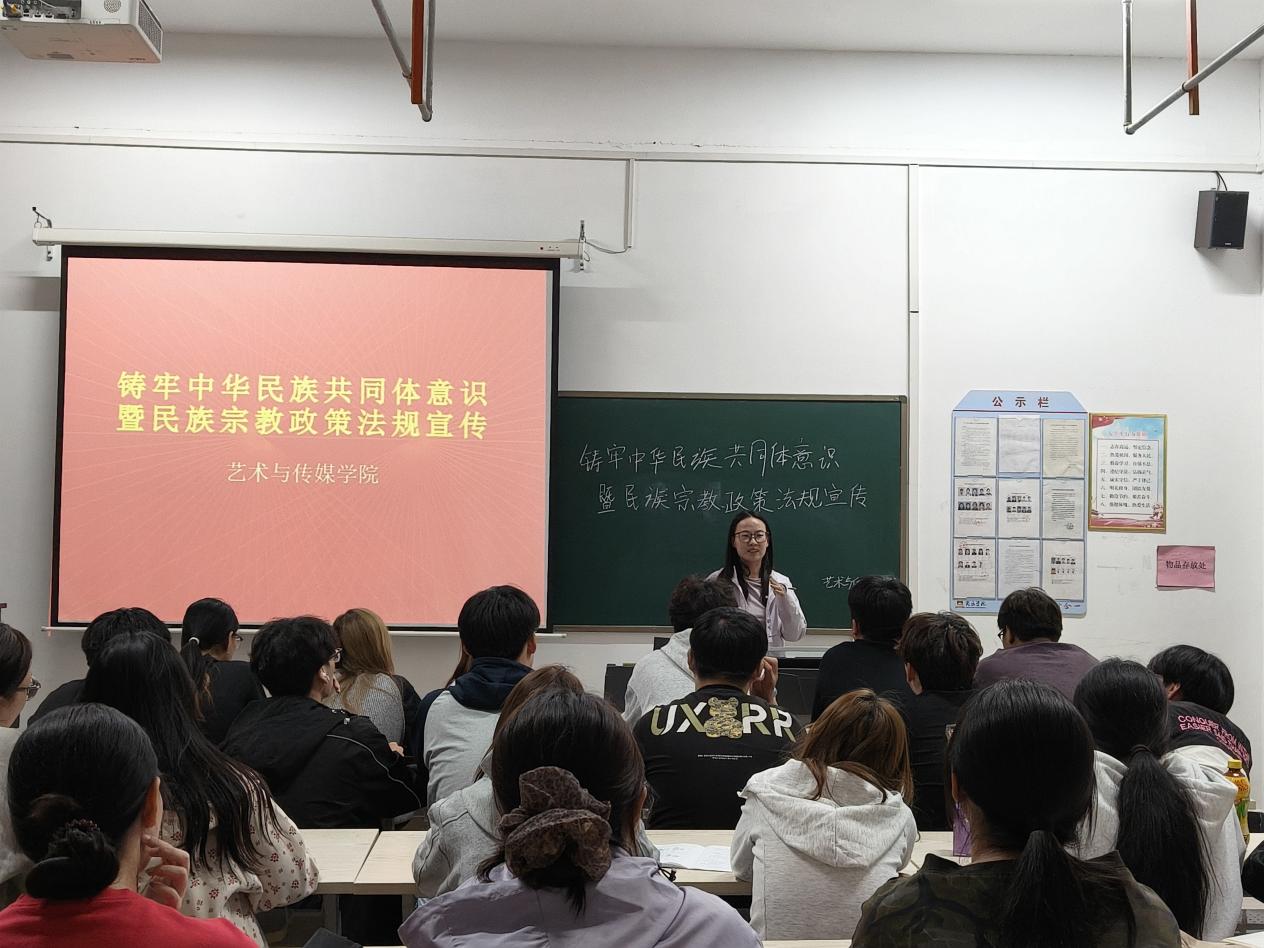 为深入学习贯彻习近平新时代中国特色社会主义思想,全面落实党中央和省委关于民族宗教工作的决策部署,根据学校统一安排,艺术与传媒学院于2025年9月积极开展“铸牢中华民族共同体意识暨民族宗教政策法规宣传月”系列活动,通过多种形式推动宣传教育走深走实。