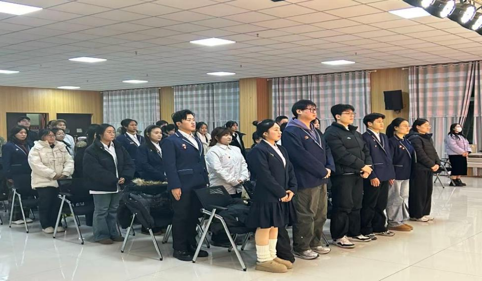 大会在《国际歌》的庄严氛围中拉开序幕。随后,学院党总支副书记王洋致辞,他向新发展预备党员表示祝贺,同时寄语青年党员要牢记入党初心,以实际行动践行党员的责任与担当,在学业、工作中发挥先锋模范作用。