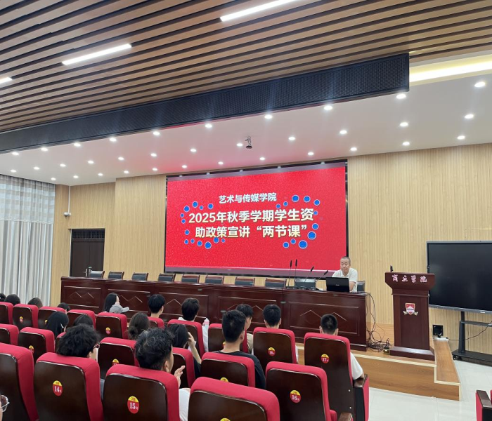 为落实国家资助政策,确保全体新生对资助政策“应知尽知”,强化诚信、感恩与励志教育,9月15日,艺术与传媒学院新生辅导员秦军长、刘叶在阶梯教室30,为2025级新生开展秋季学期学生资助政策宣讲“两节课”。