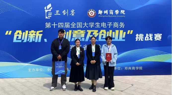 4月19日至21日,第十四届全国大学生电子商务“创新、创意及创业”挑战赛河南赛区选拔赛在郑州商学院举行,我院网络与新媒体专业老师崔颖、李丹带领常超凡、张延丰、董欣雪、李路莹、郭子涵等5位学生,共3支队伍奔赴郑州商学院参赛。经过3天的紧张角逐,其中,常超凡、张延丰团队取得了省级二等奖的佳绩。
