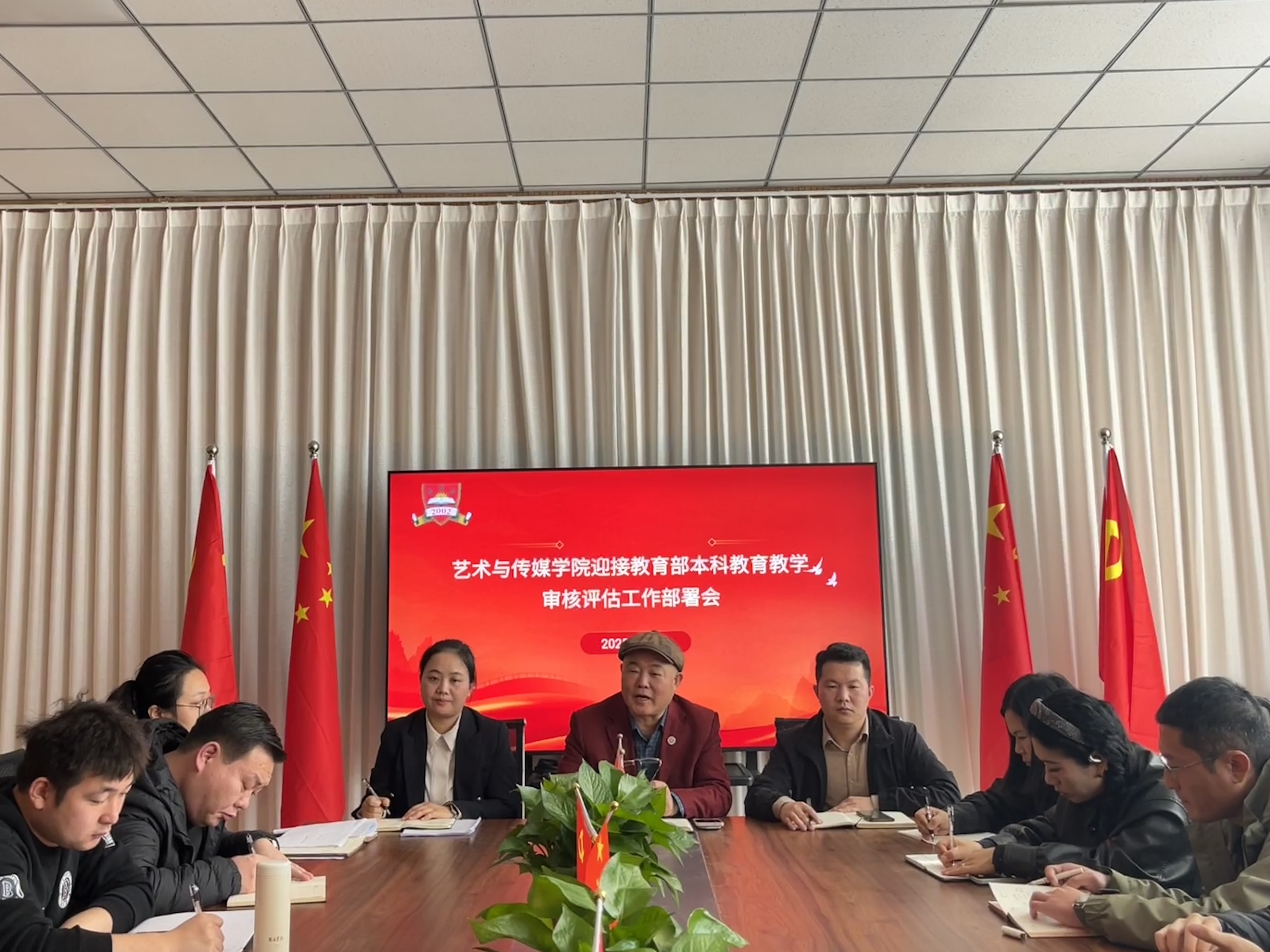 为全面统筹推进教育部本科教育教学审核评估迎评准备工作,明确工作责任,细化任务分工,确保评估各项工作落到实处,2025年10月31日中午,艺术与传媒学院在艺术楼4003会议室召开迎接教育部本科教育教学审核评估工作部署会。艺术与传媒学院党总支书记、院长张书根、副院长崔颖、党总支副书记张书海,各教研室主任以及全体辅导员参加会议,会议对迎评工作进行了全面部署安排。