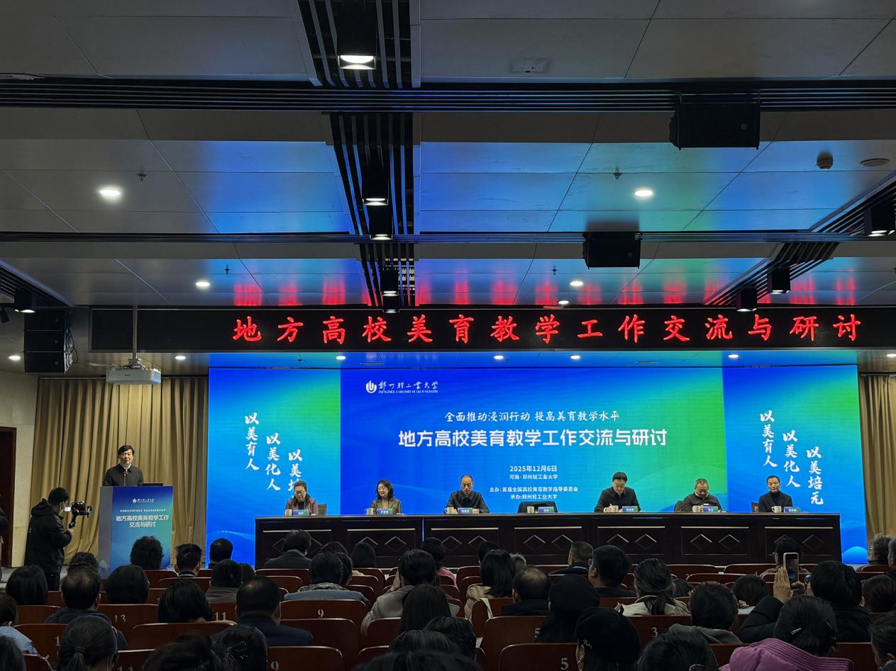 美育是立德树人的重要载体,是提升学生审美素养、塑造健全人格的关键路径。12月6日,为深入贯彻落实美育浸润行动、切实提升高校美育教育教学质量,由首届全国高校美育教学指导委员会主办、郑州轻工业大学承办的地方高校美育教学工作交流与研讨活动,在郑州轻工业大学科学校区隆重启幕。我校公共艺术教研室康丽君老师参会,与全国各高校美育领域专家、教育同仁齐聚一堂,共探新时代美育育人新路径,为夯实美育工作根基汲取智慧与力量。