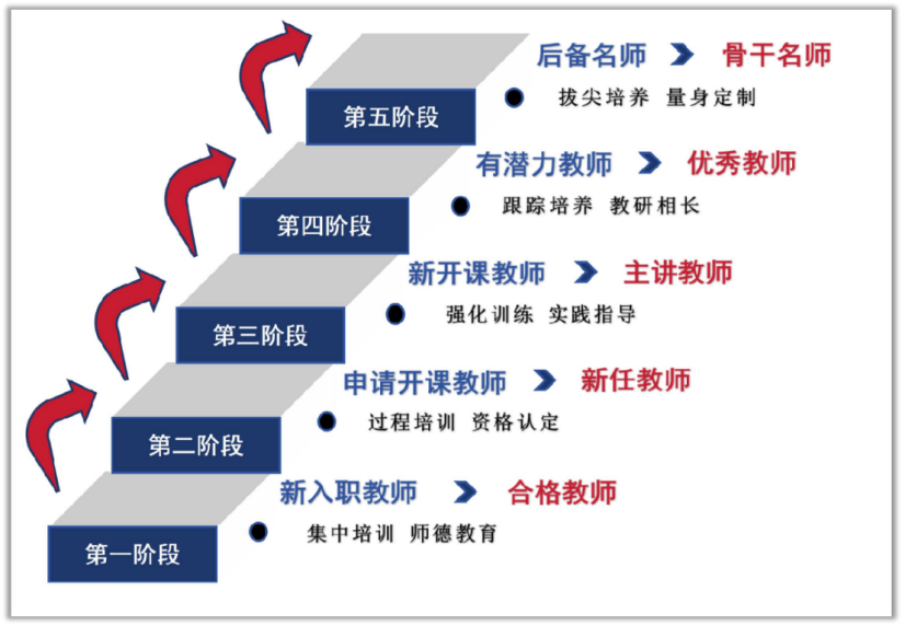 通过以合格教师为目标的新入职教师集中教学培训、以获得授课资格为目标的新任教师助教过程培训、以称职主讲教师为目标的新开课教师强化培训、以优秀教师为目标的成长过程跟踪培养和以教学骨干、教学名师为目标的个性化拔尖培养,持续构建完善“五阶段递进式”教师教学能力提升平台,帮助教师提高教学技能、更新教育理念、拓宽知识视野,促进教师的全面成长和发展。《五阶段递进式教师教学能力提升平台》立项为河南省民办高校特色发展项目,获批专项经费60万元。