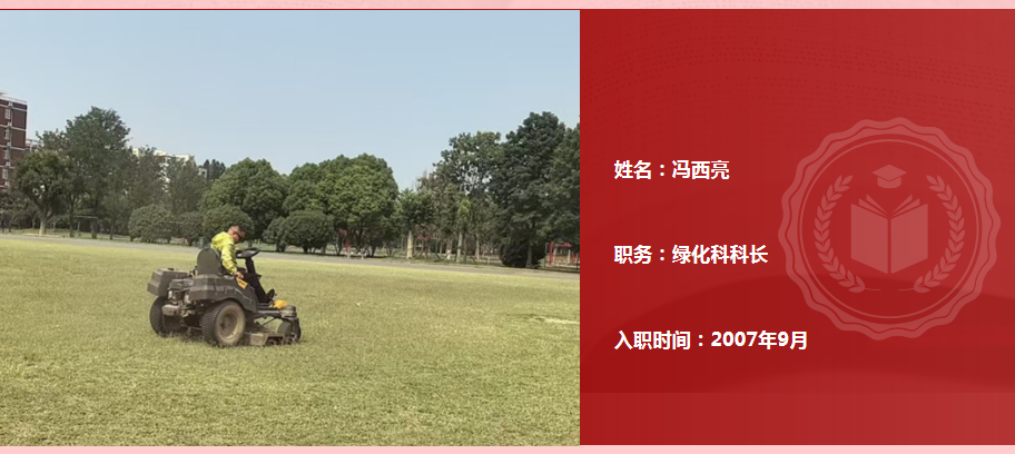“每一棵树的姿态,都藏着对校园的热爱;每一片草坪的葱郁,都是对责任的诠释。”在咱们校园里,有这样一位后勤人——他日复一日穿梭在林荫道间,用脚步丈量绿化版图,用双手浇灌满园生机,以实干践行党建使命,用服务温暖师生心田。他,就是后勤处绿化科科长冯西亮,一位深耕校园绿化领域十余载的“守护者”。