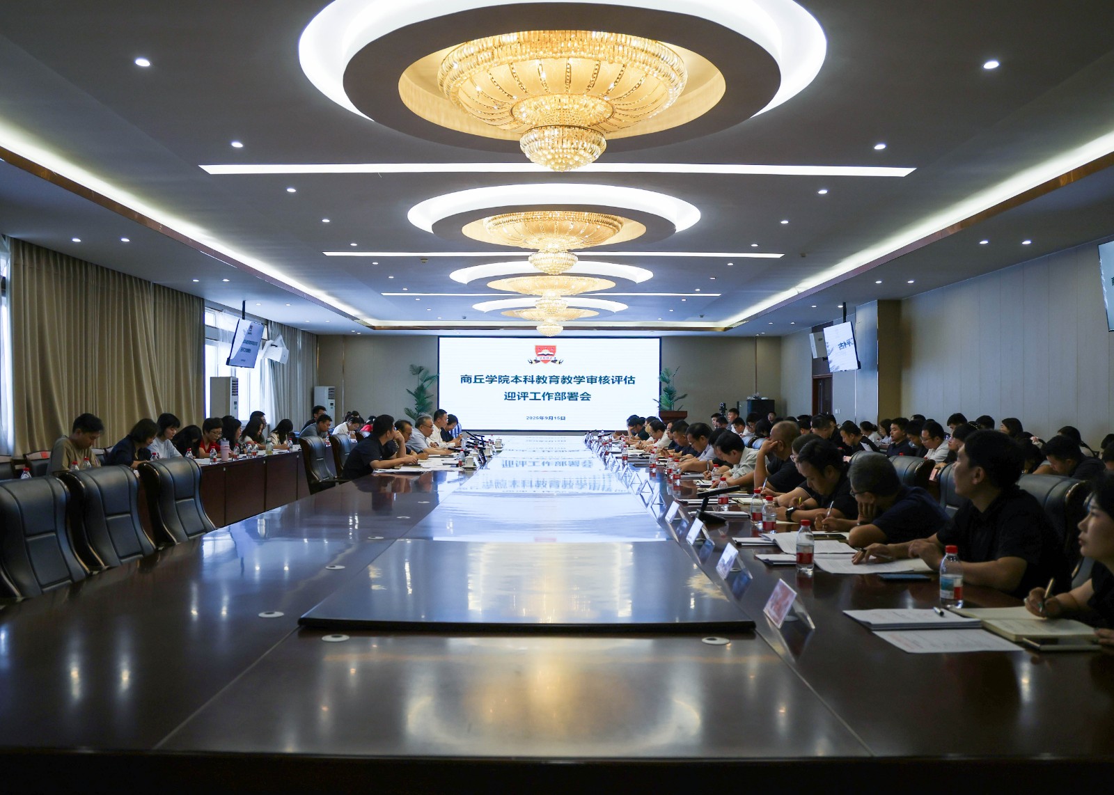 为全面推进本科教育教学审核评估迎评工作,明确任务、压实责任,确保高质量通过本科教育教学审核评估,9月15日,学校在第一会议室召开本科教育教学审核评估迎评部署会。全体校领导、处级以上干部、各教学单位教研室、实验室主任,评建办、教务部、质量监测与评估部全体工作人员参加会议,会议由校党委副书记、校长程印学主持。