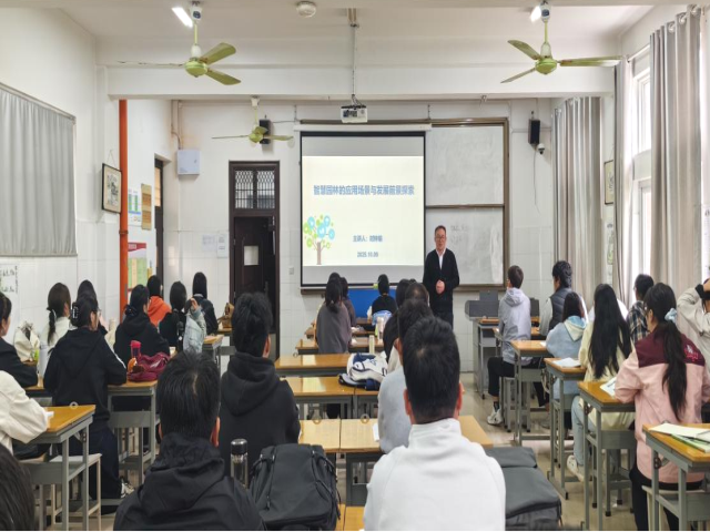 随着人工智能技术不断更新,物联网技术的成熟推广,园林行业面临着前所未有的冲击和挑战。为深化学科交叉融合,助力学生把握行业前沿趋势,风景园林与建筑学院于10月09日上午9时在D405举办“智慧园林应用场景和发展前景探索”主题讲座。园林教研室主任时钟瑜副教授担任主讲嘉宾,内容聚焦智慧园林技术的多元应用场景,展现科技赋能生态建设的创新实践。