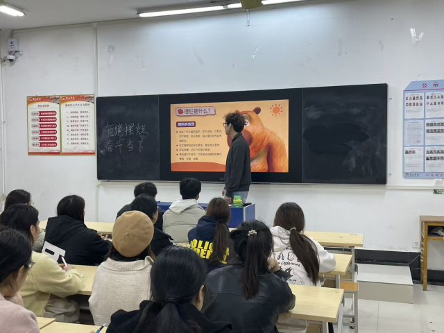 活动伊始,主持人通过精心制作的PPT,详细阐释了摆烂的含义、常见表现及对个人发展的不良影响。随后播放的励志视频,生动对比了摆烂与奋斗两种人生选择的不同结局,引发了在场同学的强烈共鸣与深入思考。