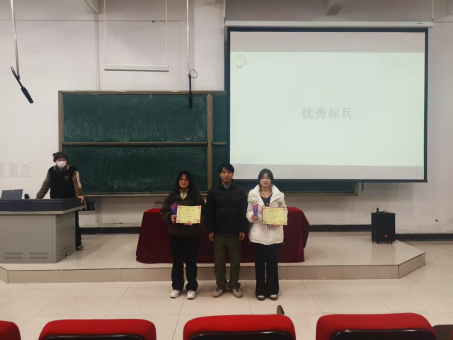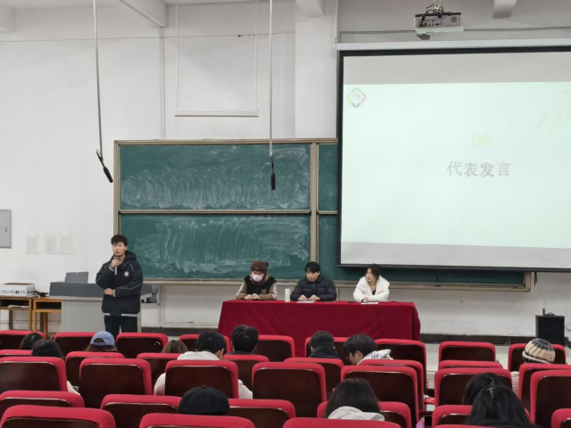 会议伊始,贾青松老师发表讲话。他首先对学生会本学期在活动组织、学生服务、校园建设等方面的辛勤付出与显著成果给予充分肯定,随后鼓励全体成员坚守服务初心,提升综合素养,以更饱满的状态投入后续工作。接着,王兢珂上台作工作报告,通过详实的数据与鲜活的案例,系统回顾了本学期各项工作的开展情况,客观分析了工作中存在的问题与不足,并明确了下学期的工作重点与实施计划。之后,大会进入颁奖环节,获奖成员依次上台领奖,团总支书记与执行主席为其颁发荣誉证书。最后,学生代表发言,分享了自身在学生会的成长经历与工作感悟,并承诺将继续发挥模范带头作用,与全体成员共同进步。