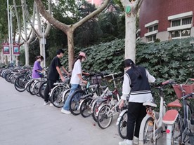 志愿者们按时到达I座教学楼楼下集合,并被分成两个小组,在学院南北两边的自行车停放点展开活动。志愿者们将翻倒在地的自行车摆放整齐,对无序停放的自行车进行集中停放。同时,他们还引导骑行的学生要有序停车并劝阻了不文明停车行为。经过志愿者们认真摆放、整理,校园道路变得宽敞,自行车摆放变得有序。