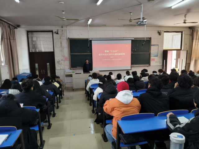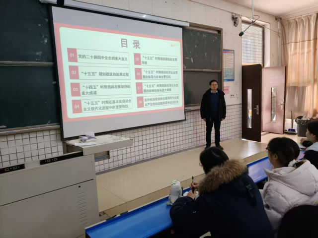 2025年12月18日,商丘学院风景园林与建筑学院党总支副书记王百田在阶梯5教室,为学校入党积极分子讲授党的二十届四中全会精神专题党课。来自各年级、各专业的入党积极分子齐聚一堂,认真参与学习,共同领悟全会精神实质。