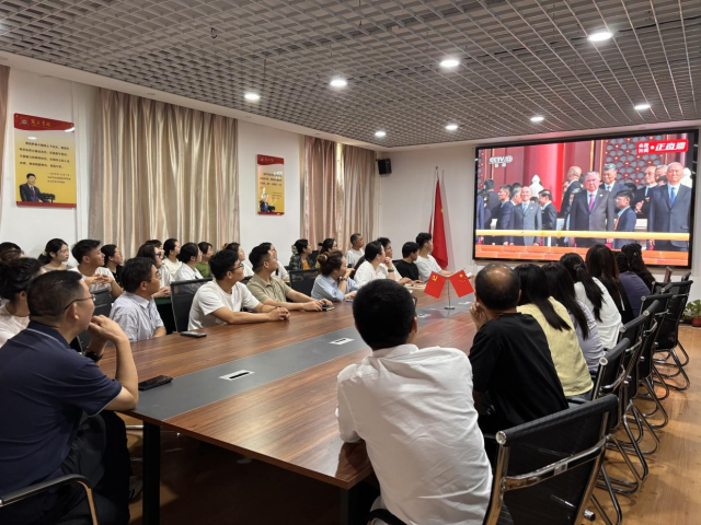 活动伊始,全体人员怀着严肃认真的态度观看直播。阅兵仪式在天安门前举行,首先映入眼帘的是45个方队在党旗、国旗、军旗的引领下受阅,徒步方队体现“一老一新”,战旗方队传承功勋荣誉。接着,装备方队按实战化联合编组,展示了新一代传统武器及无人智能等新型作战力量,部分陆海空基战略重器首次对外展示。空中梯队更是展现了强大的空中作战力量。此次的阅兵仪式展现的不仅是党的奋斗历程,更生动展现了一代代共产党人在不同历史时期坚守初心使命、勇担时代的重任。