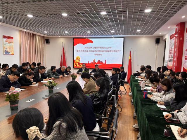 为深入学习贯彻习近平总书记关于加强和改进民族工作的重要思想,全面落实党的民族宗教政策,进一步引导全院师生铸牢中华民族共同体意识,10月10日,风景园林与建筑学院党总支在I座202会议室召开“铸牢中华民族共同体意识暨民族宗教政策法规宣传”专题会议。学院党总支书记、院长史本林,以及全体教职工党员、学生党员代表、辅导员参加会议,会议由我院党总支副书记王百田主持。