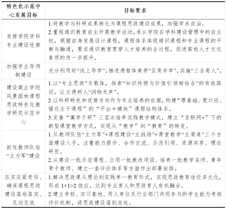 表:风景园林课程思政特色化教学研究示范中心发展目标