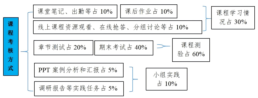 探索多元考核教学评价方式,考核方式是城市园林绿地系统规划课程思政能否最终落实的有效保证和检验手段。建立以价值取向和能力考核为主线的开放式考核体系,如下图所示。