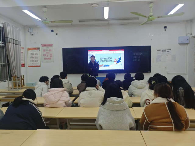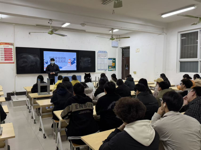 班会伊始,辅导员们向同学们普及了冬季消防安全、宿舍安全、饮食安全及防寒保暖等相关知识,结合案例讲解了违规用电、饮食不当等行为的风险。随后,辅导员们通过互动问答的形式,引导同学们掌握火灾逃生、冻伤处理等应急避险方法。最后,各班组织了“安全互助”讨论,鼓励同学们在日常学习生活中相互提醒、关爱,共同守护校园安全。