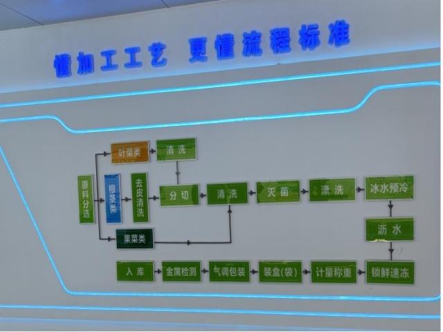 当日下午,同学们有序地进入了生产车间进行参观。透过明亮的参观走廊,大家目睹了蔬菜原料的自动化分拣、清洗、切割、消毒、包装等一系列现代化加工流程。车间内高度自动化的设备、整洁无菌的生产环境以及工人们严谨规范的操作,都给同学们留下了深刻印象。