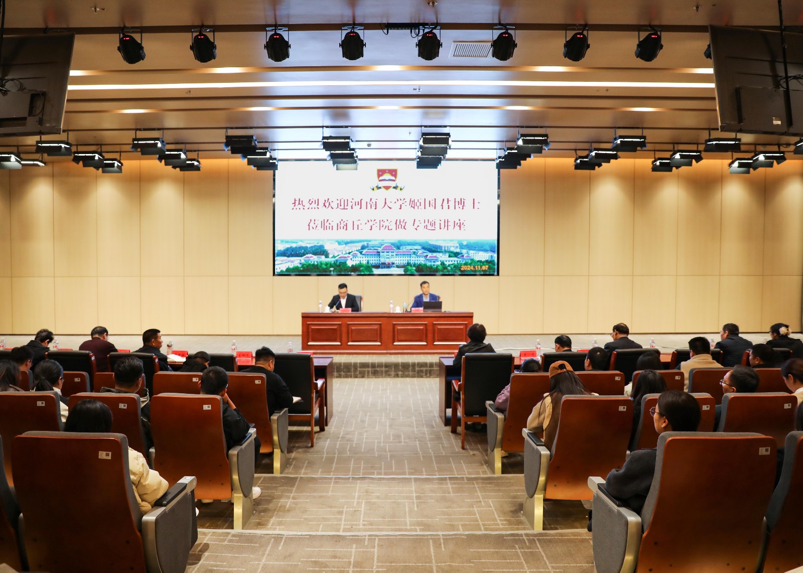 11月7日,我校邀请河南大学教育学部姬国君博士在图书馆五楼多功能报告厅开展《OBE理念下教师教学评价设计》的专题讲座,商丘学院副校长潘一展及部分教学管理、行政管理干部、教师代表参加讲座。