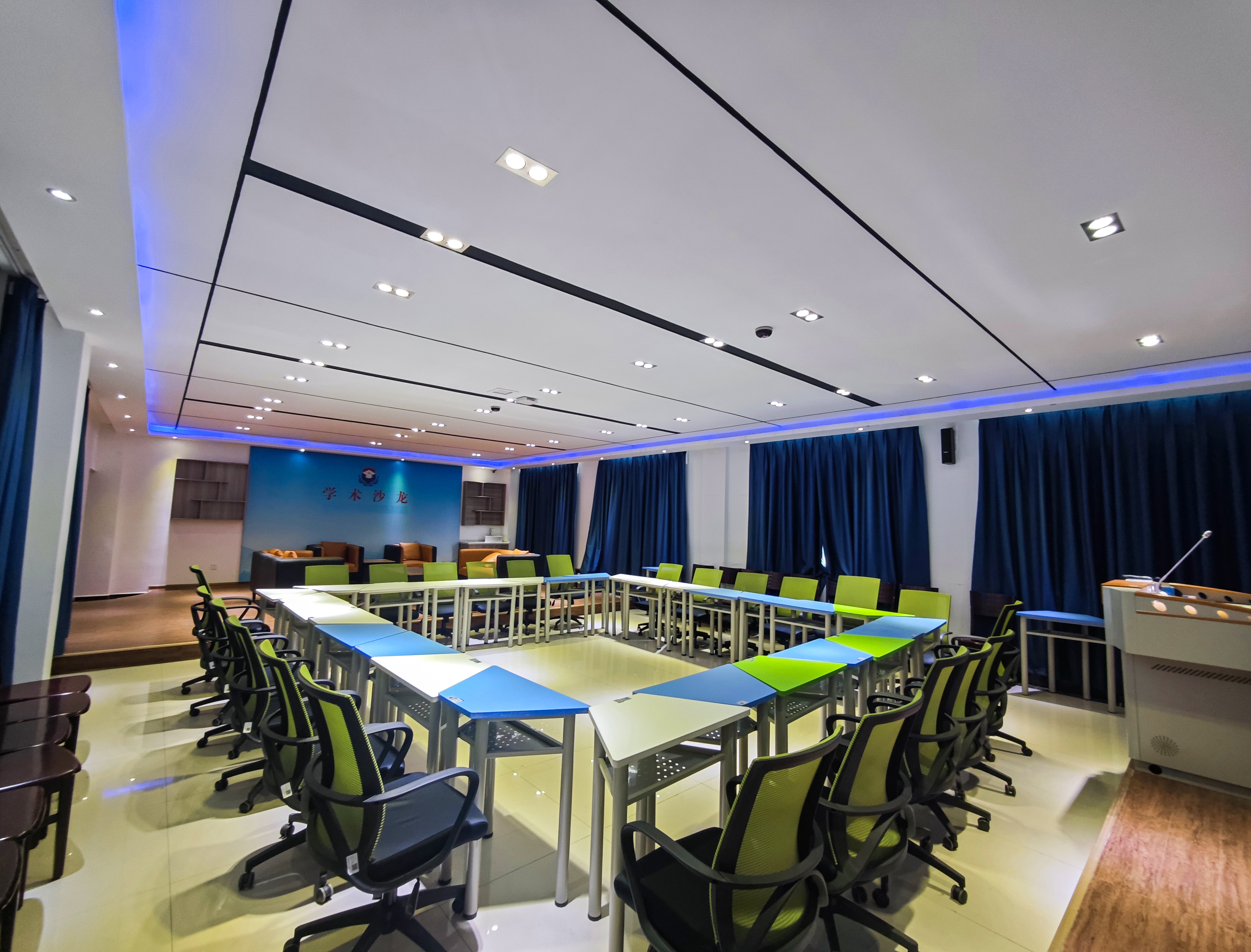 K306:学术沙龙活动室。教师发展活动室由教师发展中心主导建设,简约温馨的空间设计、智能高效的现代化设备、舒适开放的环境提升老师参与研讨、互动交流的热情。可开展形式多样的教学沙龙、研讨、交流、培训、工作坊等活动,通过经验交流和各类专项培训,组织开展教学公开课和示范课等形式,向全校教师传播和推广先进教学理念、教学模式等。