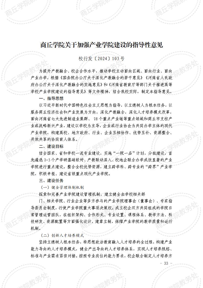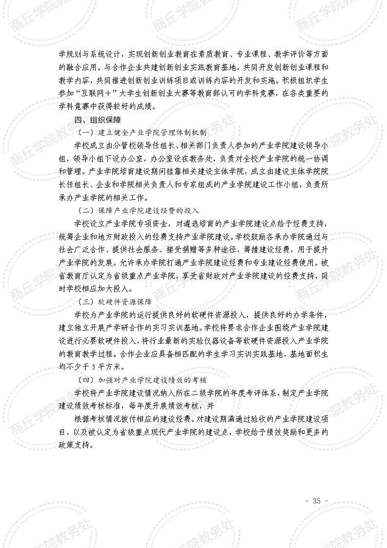 商丘学院关于加强产业学院建设的指导性意见