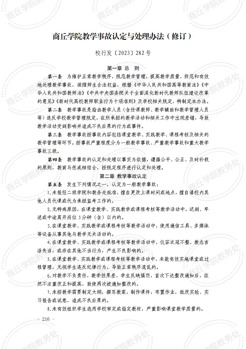 商丘学院教学事故认定与处理办法(修订)