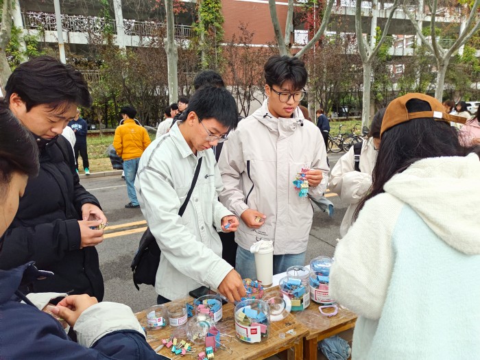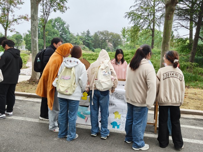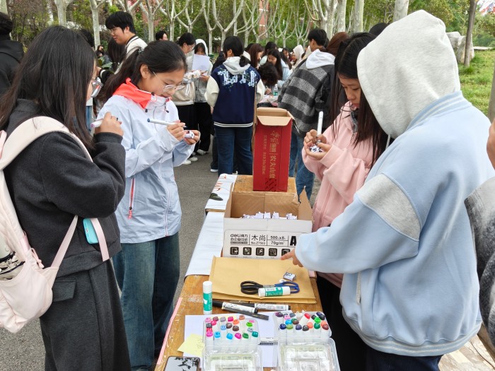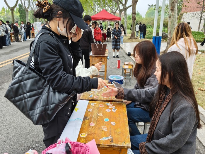 创意手工体验区同样热闹非凡,“小狗领养中心”与“小狗创造营”成为全场焦点,同学们通过“领养”或亲手制作纸小狗,找到情感寄托的新方式。一系列沉浸式手工体验,让同学们在专注与创造中释放压力,收获成就感与愉悦感。