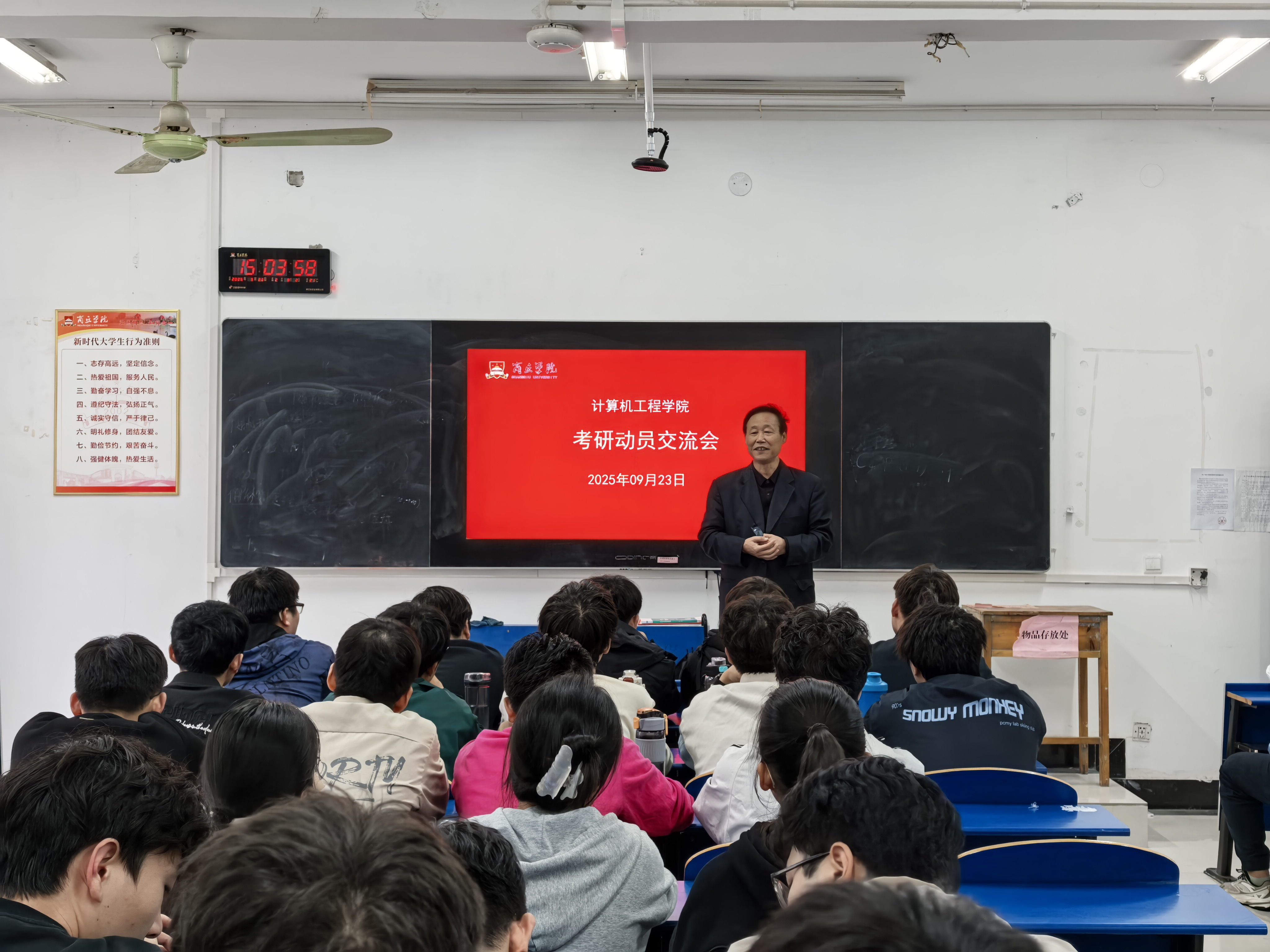 会议伊始,庞进生就当前人工智能与计算机领域的考研形势与就业前景情况下,强调了高层次人才在科技竞争中的核心价值,考研不仅是提升专业能力的途径,更是适应行业变革的关键选择。他鼓励同学们立足长远目标,合理规划备考节奏,同时强调学院将全力提供资源支持,包括考研经验分享会、导师全程辅导、兄弟院校考研资源的学习交流等,为学子保驾护航。