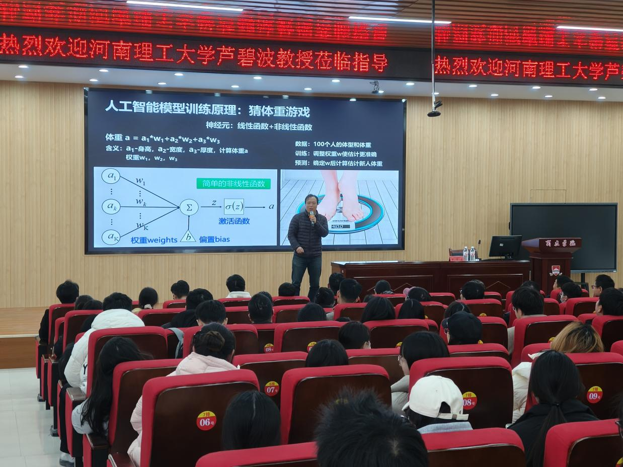 为深化教育教学改革,助力教师提升跨学科教学能力,11月26日,学校特邀河南理工大学计算机学院芦碧波教授开展“人工智能深度赋能教育教学典型案例剖析与实践”专题讲座。计算机工程学院和其他学院的部分教师,齐聚学校阶梯30号教室,共同聆听这场兼具理论深度与实践价值的学术分享。