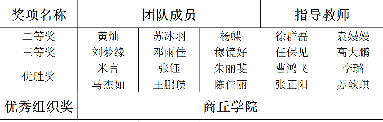 本次大赛以提升大学生人工智能应用能力与信息素养为核心目标,经过学校选拔赛、省赛淘汰赛、决赛多轮比拼,最终确定各奖项归属。商丘学院计算机工程学院(AI学院)高度重视此次赛事,将其作为检验学生综合能力、深化实践教学改革的重要契机,在赛前与学校图书馆精心组织选拔,组建由徐群磊、张正阳、任保见、高大鹏等骨干教师组成的指导团队,针对AI技术应用、信息检索与分析、团队协作等关键环节开展系统培训和针对性指导,为参赛学子提供全方位支持。比赛获奖详细名单如下: