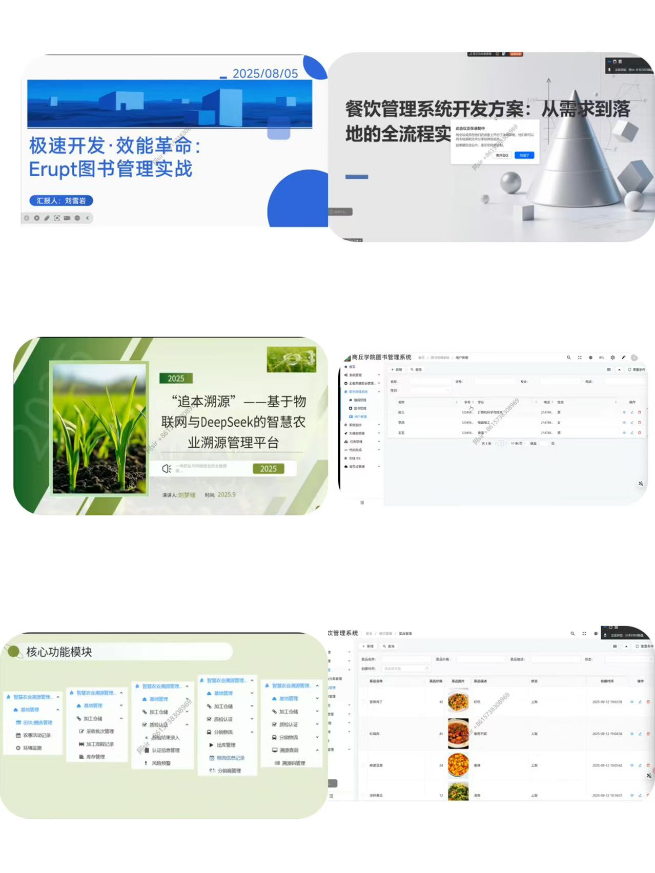 为充分检验集训成效、展示学生实战成果,数据科学与大数据技术教研室在集训落幕后迅速筹备并组织了此次路演。活动中,参训学生依次登场,通过线上演示的方式,详细介绍个人及团队在集训期间完成的项目作品:有的学生带来“追本溯源”——基于物联网与DeepSeek的智慧农业溯源管理平台,阐述如何借助物联网技术采集农业生产数据,利用DeepSeek进行数据分析与溯源管理,展现农业与科技融合的创新实践;有的展示了游戏管理系统项目,讲解系统在游戏信息管理、用户权限分配等方面的功能实现与技术架构;有的分享“极速开发・效能革命:Erupt图书管理实战”,呈现运用Erupt快速开发图书管理系统的过程与优势;还有的带来餐饮管理系统开发方案,从需求分析到最终落地,完整呈现全流程实战思路。
