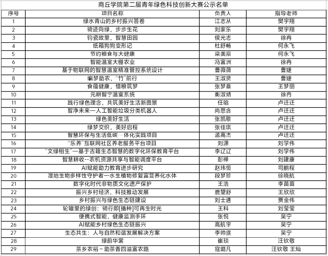 近日,随着第二届青年绿色科技创新大赛的开展,学校严格遵循公平、公正、公开的评审准则,对参赛项目进行了多轮严谨筛选与专业评审。经层层选拔,最终确定推荐29项优秀作品参加后续赛事。这些脱颖而出的项目聚焦乡村振兴、生态保护、数字经济等前沿领域,深度展现了商丘学院学子对可持续发展理念的积极探索,彰显了青年学生在科技创新中践行社会责任的使命担当,也充分体现了学校在绿色科技教育与创新实践领域的显著成效。