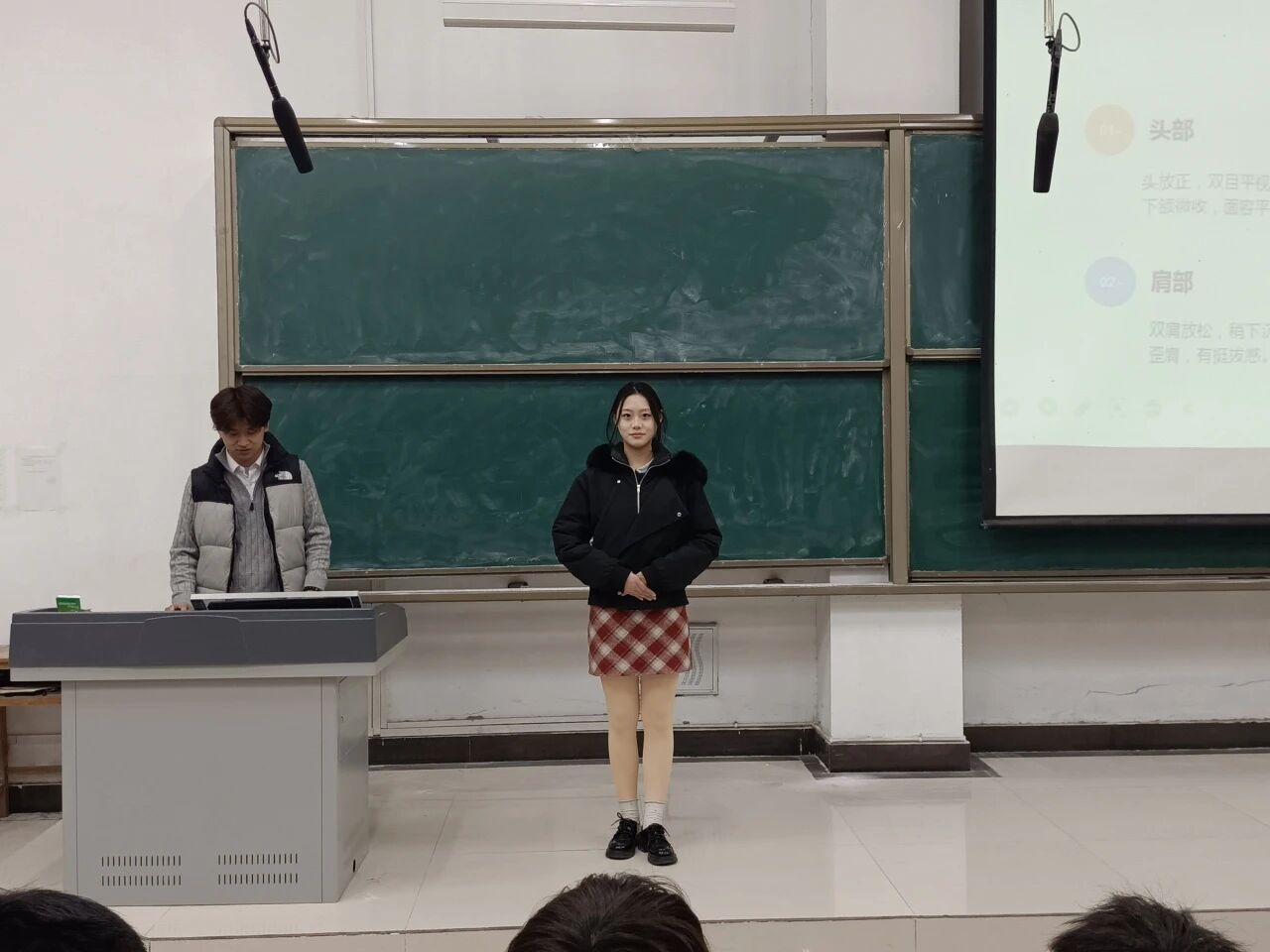 梦想模特团团长杨皓惟演讲了一堂生动的礼仪和行为规范课,培训进行了精准示范,从力求每一位学生干部都能在内强素质的同时,外塑专业、自信的可靠形象。