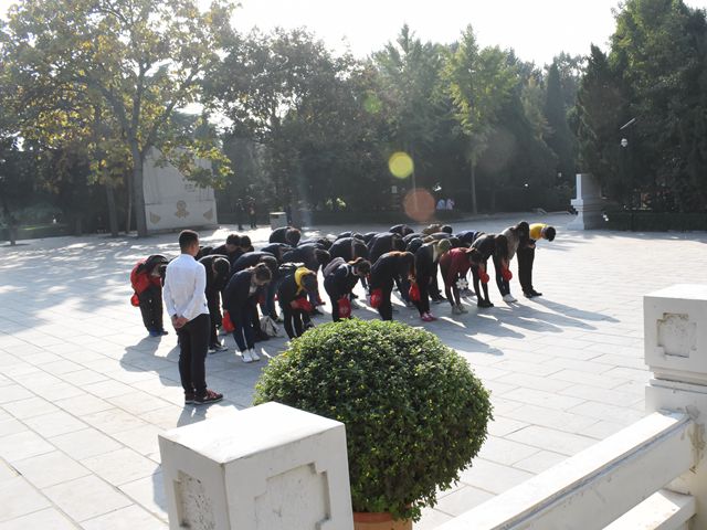 同学们在简短的休息后来到此次学习活动的最后一站——“焦裕禄烈士陵园”。雷锋班学子怀着十分崇敬的心情,来到焦裕禄烈士墓前,集体向焦裕禄同志深鞠躬表示无比的敬意。之后,胡杨组织同学们在烈士陵园内的树荫下席地而坐,共同学习交流焦裕禄同志的先进事迹和无私奉献精神。至此,此次思德教育活动圆满结束。
