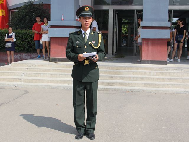 国旗护卫队队长为本次活动致辞。他表示,在五星红旗下成长的同学们,见到的只有鲜花,但70年前的记忆难以抹去。同时他希望,同学们可以牢记历史。