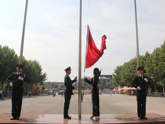 为纪念中国人民抗日战争暨世界反法西斯战争胜利70周年。9月3日上午,我校国旗护卫队于在主楼前顺利举行升旗仪式。