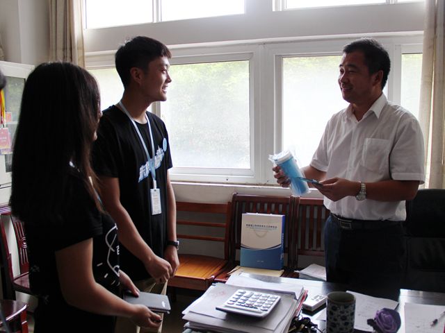 纪念礼品是一个保温杯和一张由百度百科俱乐部工作人员亲手制作的精美明信片,礼轻情意重,每份明信片上都承载了学生们满满的祝福。由工作人员亲自送到各位校领导手中,并感谢他们的培育之情。校领导们接过礼物感动不已。