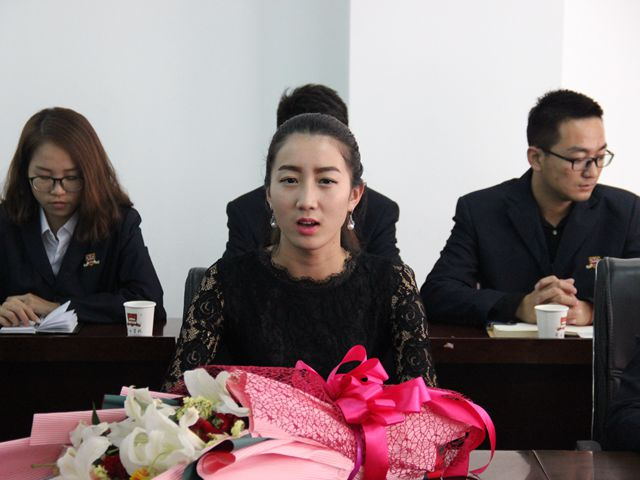 会议伊始,郑磊老师首先对领导的到来表示欢迎,并对刘欣悦进行简要介绍。她是我校文学院学前教育大二学生,不仅在我校文艺活动中表现活跃,更在校外拓展自己,获得商丘第二届微女神大赛形象总冠军,商丘车模大赛最佳车模奖等.