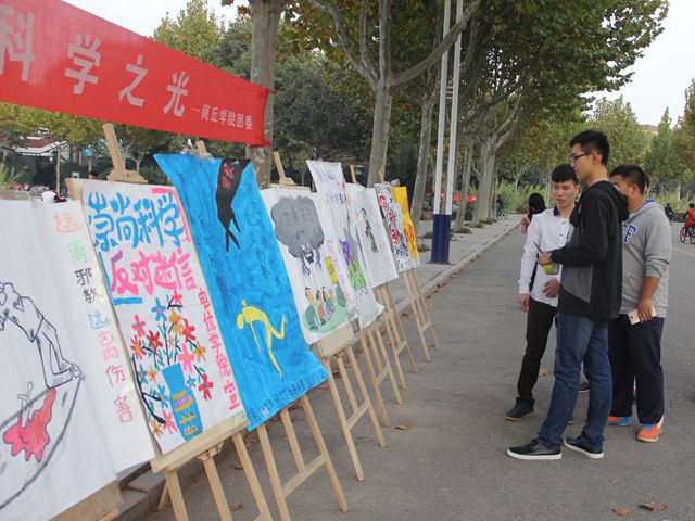 增强法制观念,抵制邪教活动,构建和谐校园。为此,10月28日下午,我校各个院系共同开展以“反邪教”为主题的政治学习活动,并在天鹅湖展示由各分院制作的宣传海报。