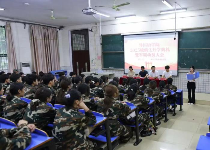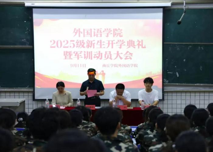 为强化学生纪律性,激发和调动学生的积极性和热情,9月12日,商丘学院外国语学院于阶梯教室5举行2025级新生开学典礼暨军训动员大会。
